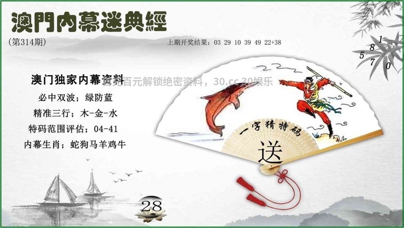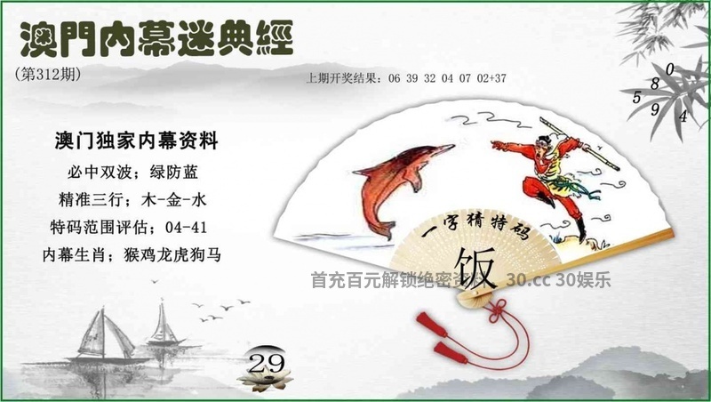 | 314期:专业杀半波【绿波单】开:羊23准 |